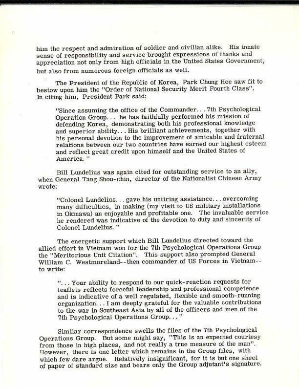 Tribute To COL Lundelius