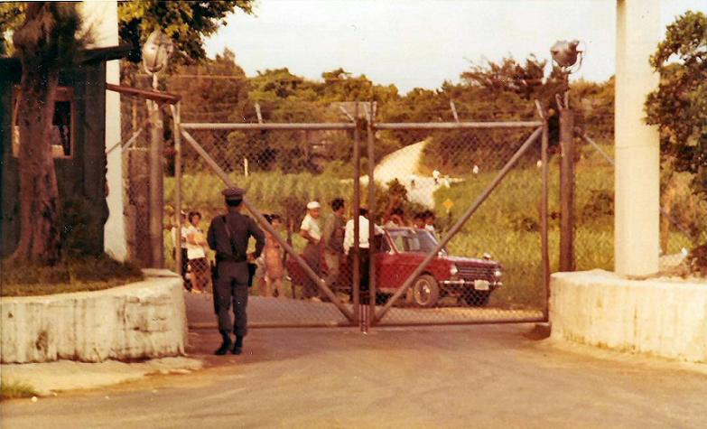 We discover the man they wanted was our second cook. What was sad about it was he had an unofficial off-base house and a live-in girl. So we know he was getting some. The following month was ugly. We weren’t to go anywhere off-duty in our uniforms, not that we did anyway. We were besieged by protestors regularly. Big banners posted outside our compound. Dozens of locals milling around the gate (Picture). Once there was a very large and organized protest where several thousand locals participated. We had a small contingent of either rangers or Special Forces housed in our EM center during that week of the big protest. Seems it was not a big secret it was planned. This was the first time the demand for return of Okinawa to Japan was made by various Japanese groups.
