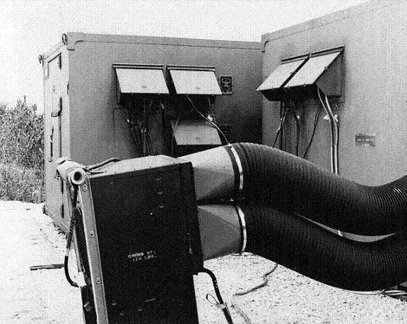 The four transmitter shelters, two for the studio, plus the generators made up the 50,000 watt AN/TRT22. The six shelters were setting on land filled pads beside the road, The tower was at the end of a long dirt fill road leading out into the middle of this wet, grassy mess. Grounding wires ran out from the base of the tower in all directions. We were taking the tower down I found out later. Even though the shelters were locked up at night, when someone tried to steal the huge transmitter cable and one of the portable AC units we had to post a guard 24/7 until the shelters were brought back to the compound. I ended up on the third shift. I saw quite a few sunrises.