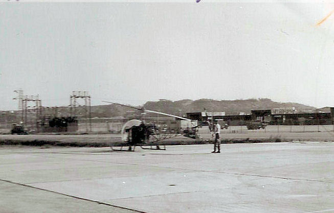 Bruno Maselli Getting Ready To Load Leaflets into Marine Bell Helicopter for drop over Okinawa in 1958 |