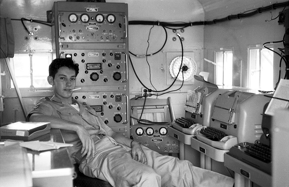 Gates AN/MRT-5 equipment Being Readied For Deployment To Laos In 1958 From left: Antenna tuning hut, Studio Van and Transmitter Van with 1957 Chevy in Foreground. |