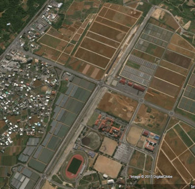 Satllite Image Of Present Day Location of Yontan Airfield. The Road in Middle Of Image was built on the main runway. |