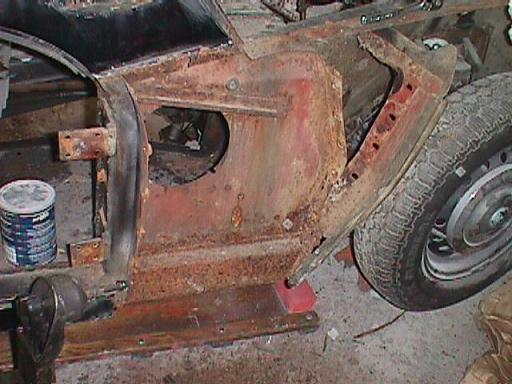Oh how wrong and how Ripped Off was I.. When I started stripping the body for its "cosmetic work", I was stunned and sickened by what I found. To say it as nicely as possible, "The car was a piece of Crap"! Not only was there body putty everywhere and MAJOR rust damage in EVERY body part, but it was evident the car had been wrecked and the front end was out of alignment.. In the restoration, we even found that the body was not bolted to the frame but had actually been welded to the frame! We also did not find much of any evidence of the long list of things the dealer reportedly had done to this car.