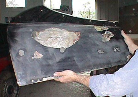 I spotted a listing in a local Car Buyer magazine for a 1958 TR3 that was advertised as having extensive restoration work. I drove to the Foreign Car dealer service in Middletown and looked at the car. I asked the owner and his assistant if the car had any body damage and Bondo (Body Putty). They both answered "No" the several times I asked this question and further replied that the car needed only "cosmetic work". The price was pretty steep (I am embarrased to admit how much), but he showed me a long list of things he said he had done to the car. I said OK since a reputable sports car dealer mechanic would not lie about such things..............