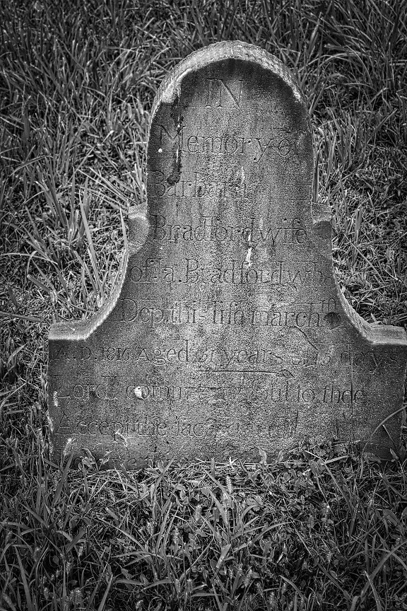 Barbara Bradford wife of Ja Bradford who Dep this life march in A.D.1816 aged 51 years 3 Mo 5 days Lord commit my soul to thee Accept the face of death Receive this noble gift of me