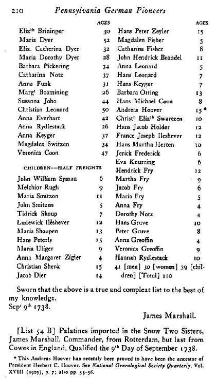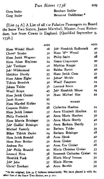 Passenger List Snow Two Sisters from Rotterdam 1738